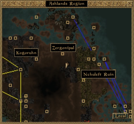 Die Höhle befindet sich an der Position des Mauszeigers oben im Bild. Dazu ein Screenshot der lokalen Map: